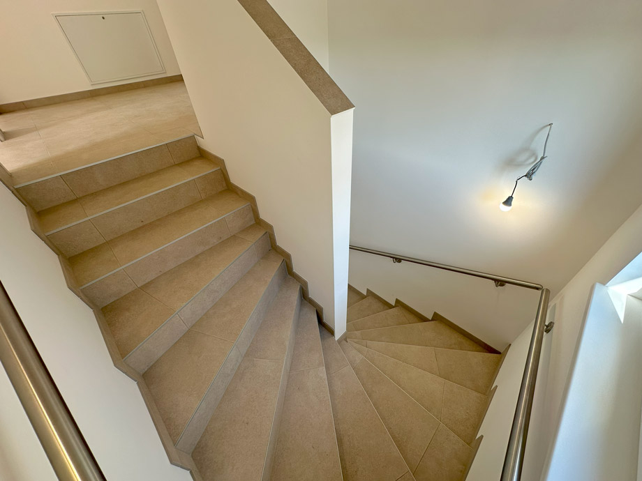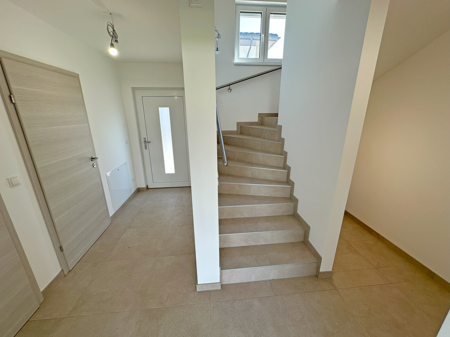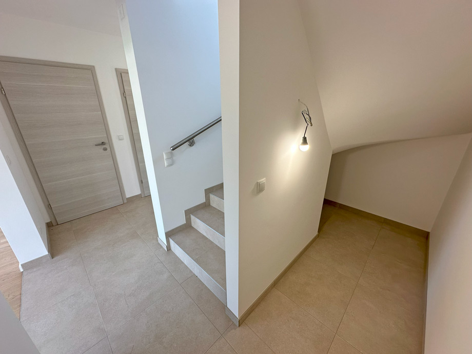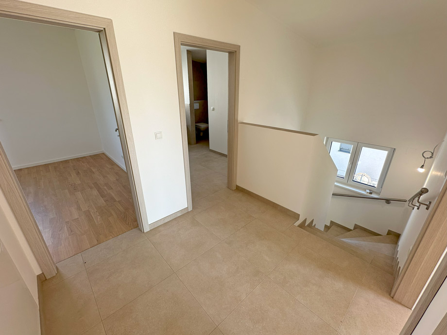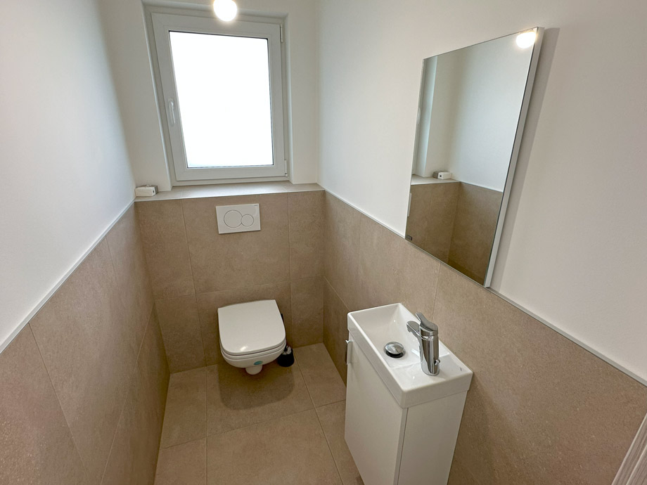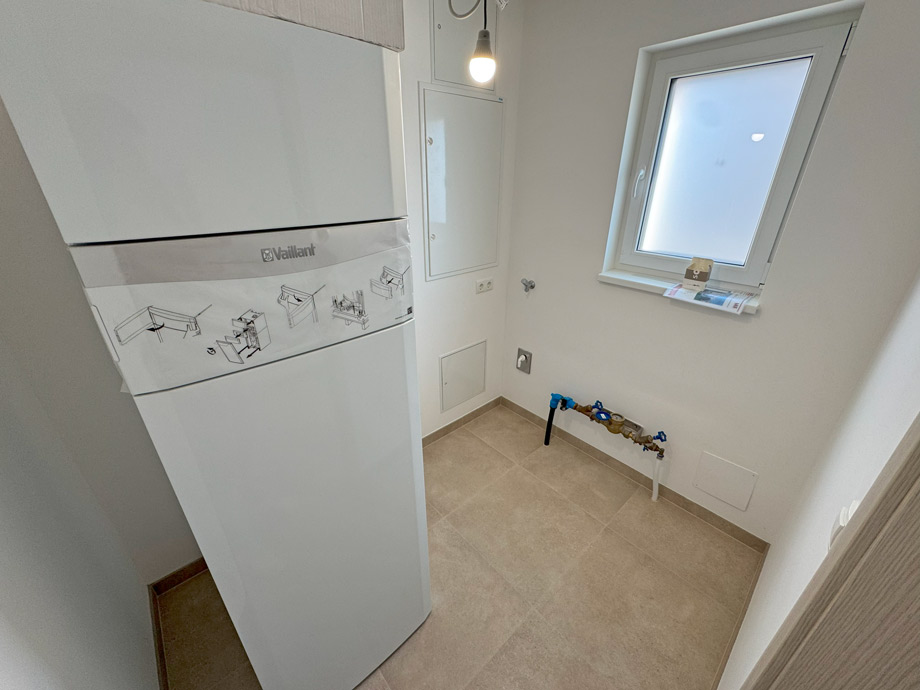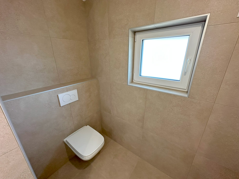 Das Haus überzeugt durch ein gut durchdachtes Raumkonzept und ein großzügiges Platzangebot auf zwei Ebenen. Im Erdgeschoss sind vom Vorraum aus der Technikraum mit Waschmaschinenanschluss, Fenster und Platz für einen Trockner sowie ein separates WC mit Handwaschbecken und Fenster erreichbar. Unter der Treppe befindet sich zusätzlicher Stauraum, der sich ideal als Garderobe oder Abstellfläche nutzen lässt.