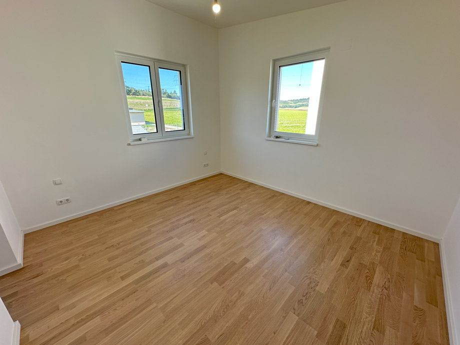 Die Ausstattung umfasst eine Fußbodenheizung und -kühlung mittels Vaillant Luft-Wärmepumpe, Kunststofffenster mit 3-Scheibenverglasung, eine große Hebe-Schiebetür zur Terrasse, hochwertige Eichenparkettböden, elektrische Außenrollläden mit Funksteuerung, massive Bauweise mit 40 cm Ytong Thermo-Verbundsteinen, massive Zwischenwände, eine SAT-Anlage, Gartenbewässerung mit Beregnungscomputer, Blitzschutzsystem, Stabmattenzaun in Anthrazit sowie Pflastersteine mit Drainfugen bei der Zufahrt und Stellplätzen. Teilweise sind Insektenschutzgitter montiert und in jedem Zimmer ist ein LAN-Anschluss vorbereitet. Vorbereitungen für eine Alarmanlage, eine E-Ladestation, Solar- bzw. Photovoltaikanlage, eine Rasenroboterstation sowie eine Lehrverrohrung für eine Gegensprechanlage an der Grundstücksgrenze sind bereits getroffen.