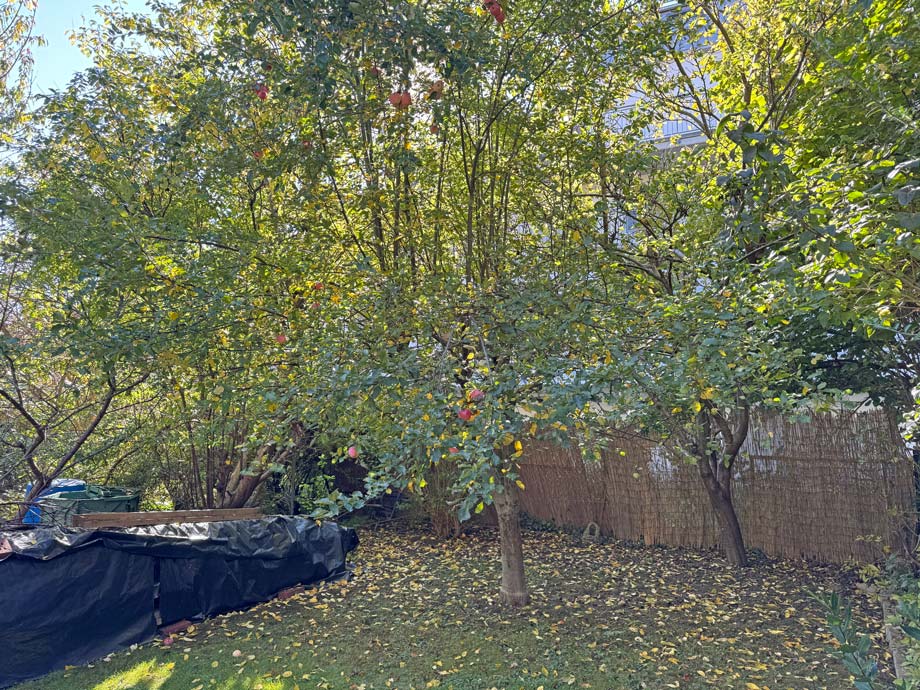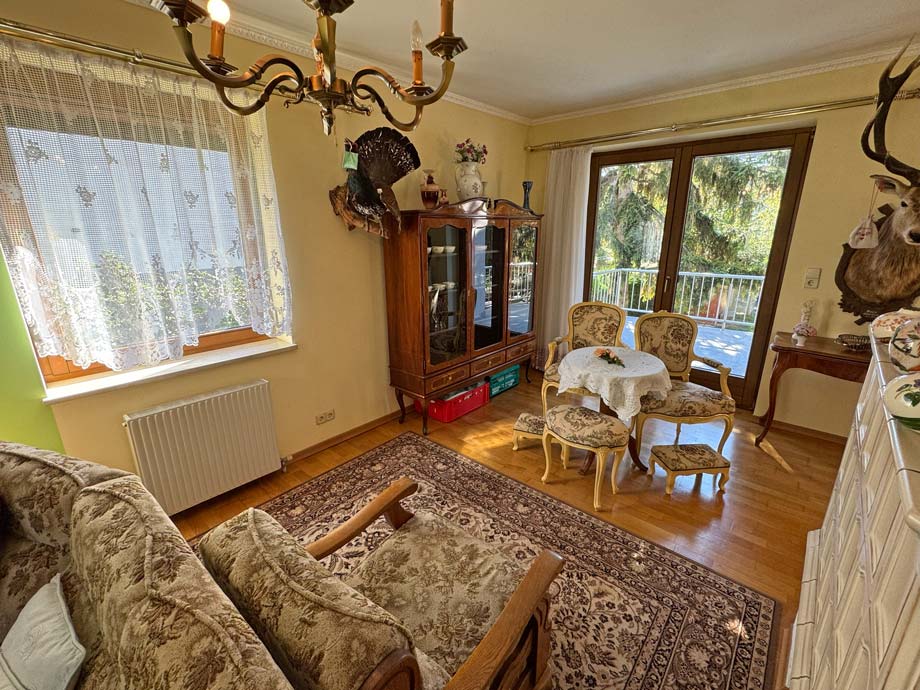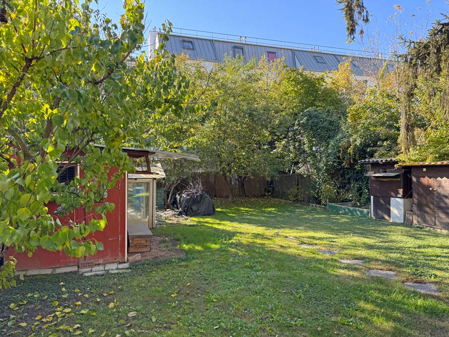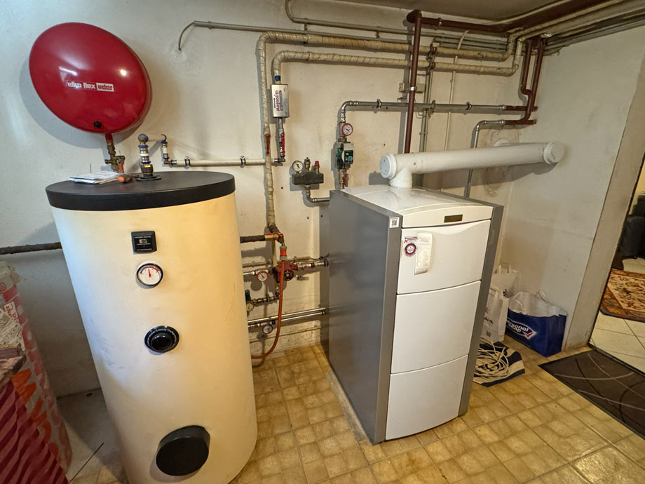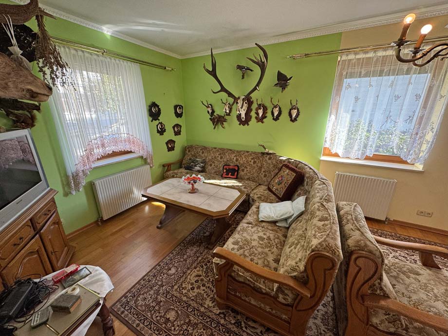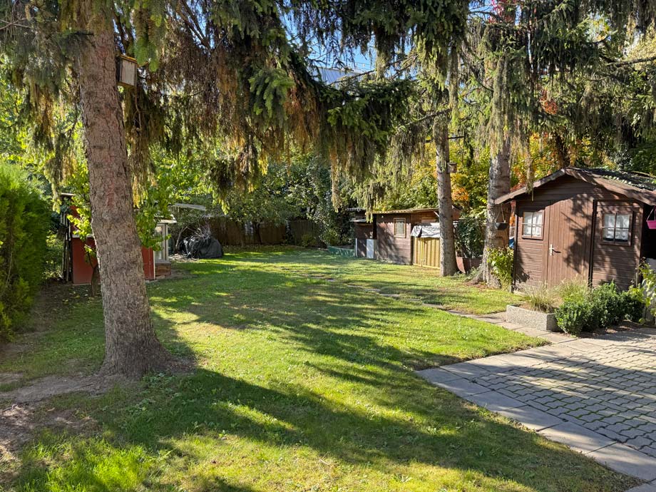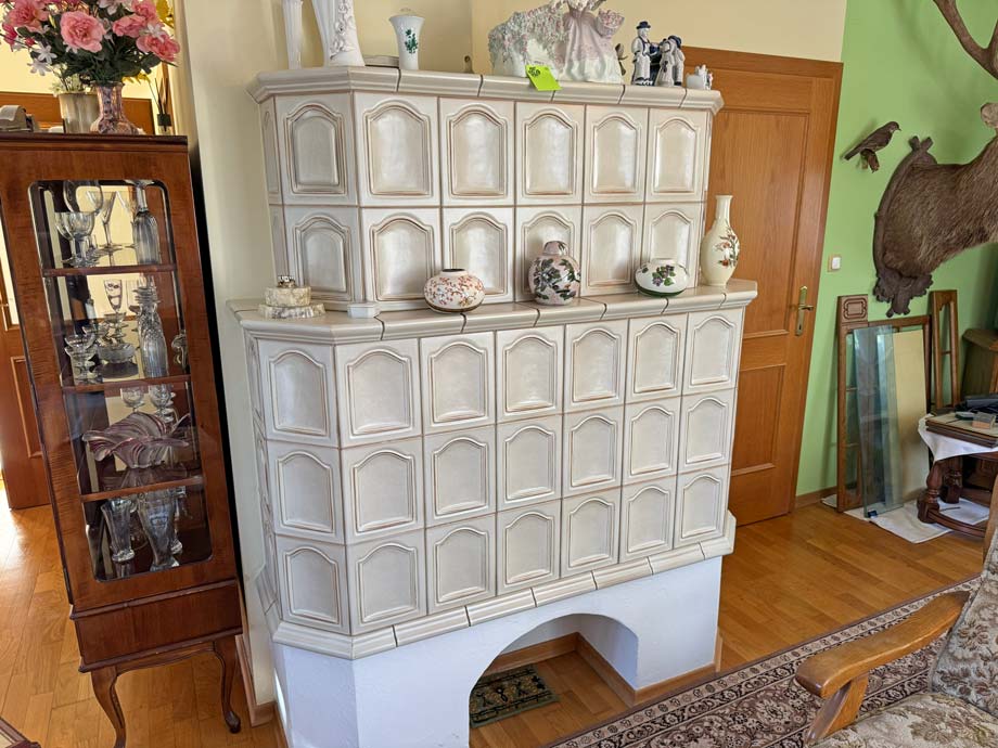 Beheizt wird das Haus über eine Gaszentralheizung, im Wohnzimmer sorgt ein Kachelofen für zusätzliche Behaglichkeit, im Keller ein Schamott-Ofen. Im südwestlich ausgerichteten Garten befinden sich zahlreiche Obstbäume und praktische Gartenhütten für Stauraum.