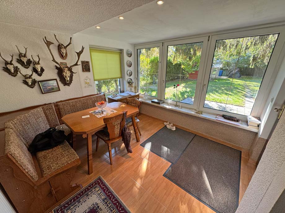 Der Keller wird teilwiese wohnlich genutzt und bietet eine neuere Zweitküche mit Essbereich, ein zusätzliches Zimmer mit großer Fensterfront zum Garten, den Heizraum, einen weiteren Sanitärbereich sowie mehrere Räume für Hobby und Stauraum. Vom Kellergeschoss gelangt man direkt in den Garten.
