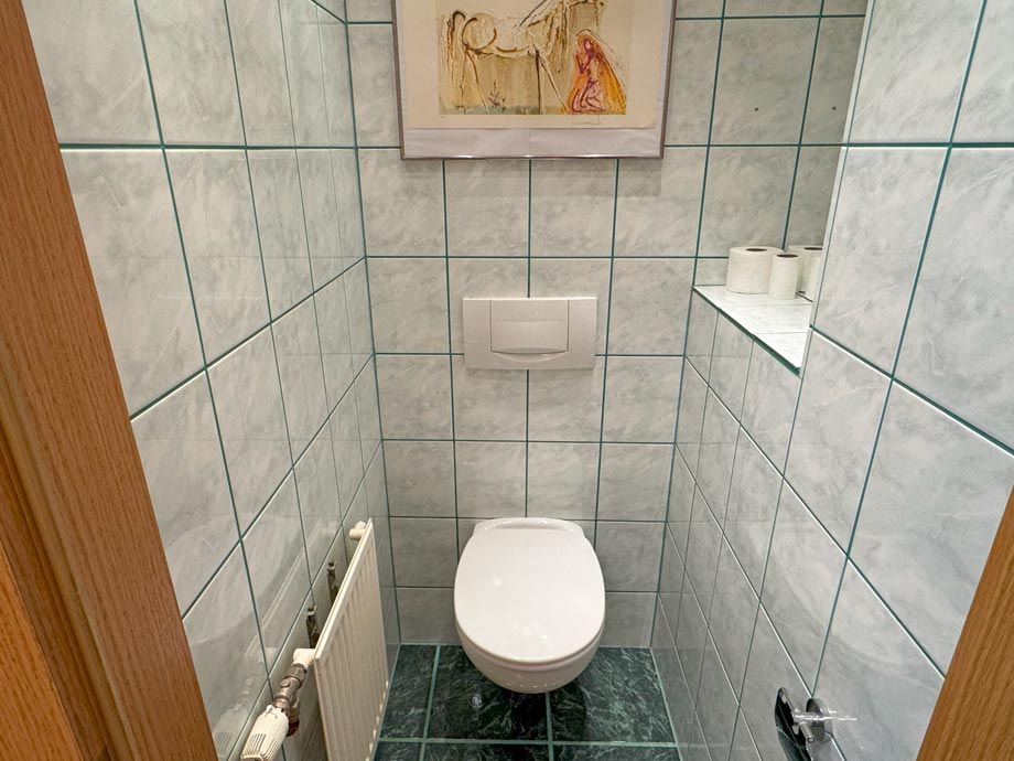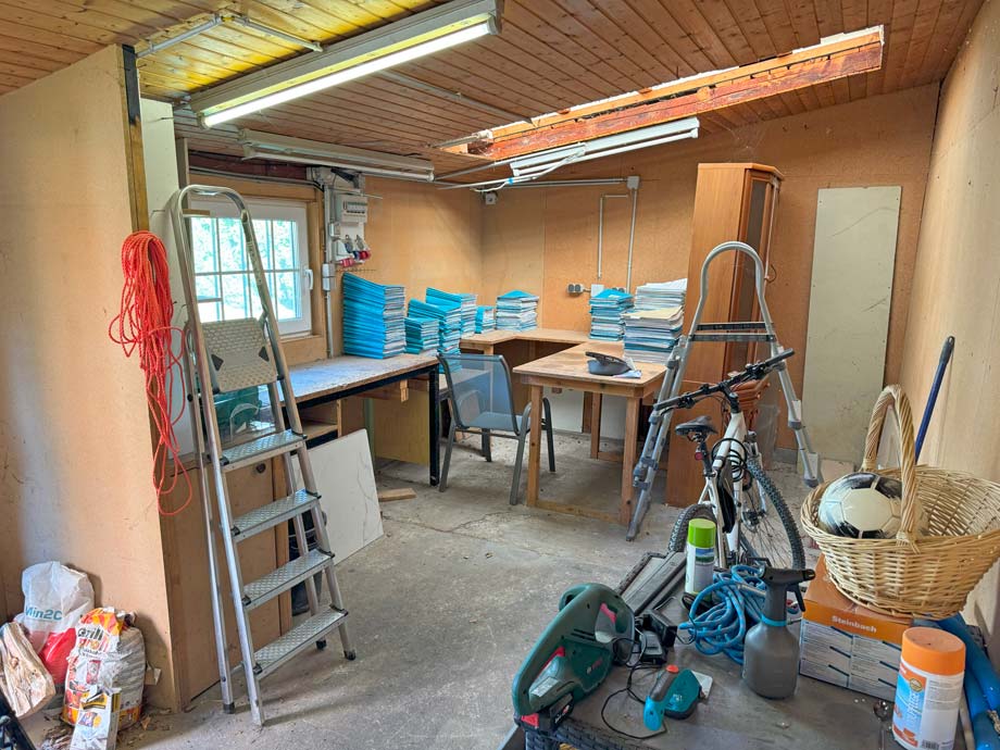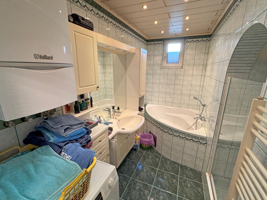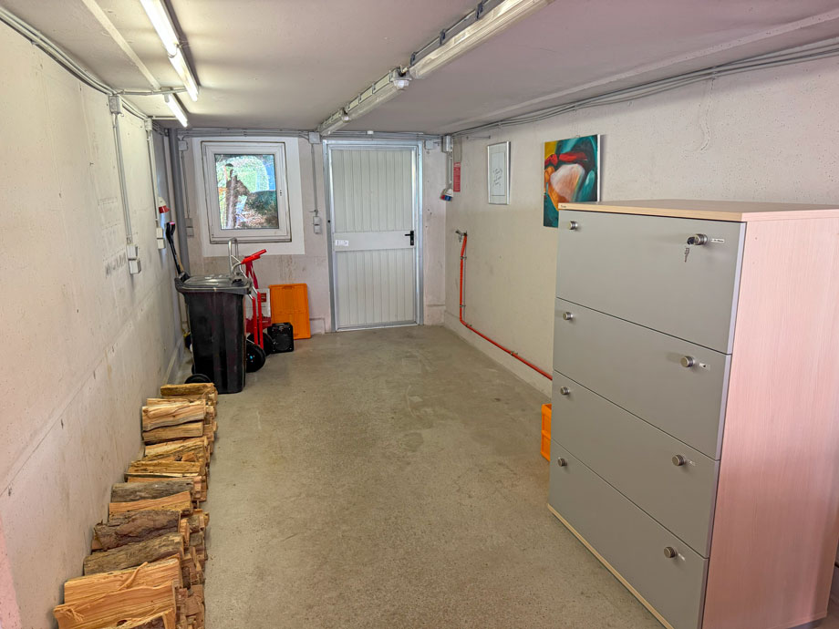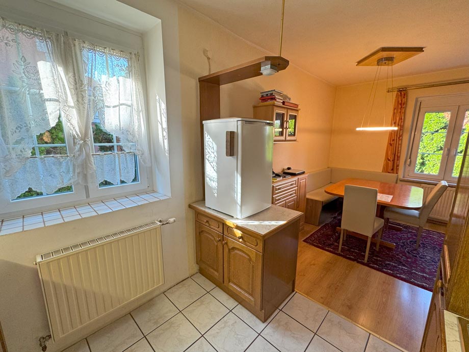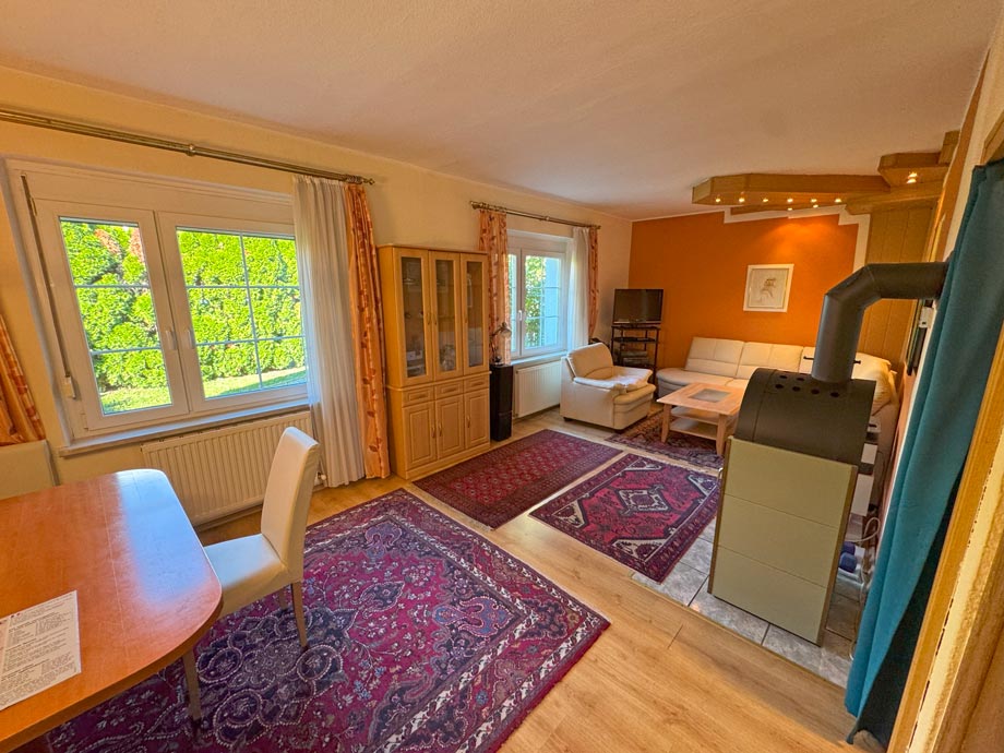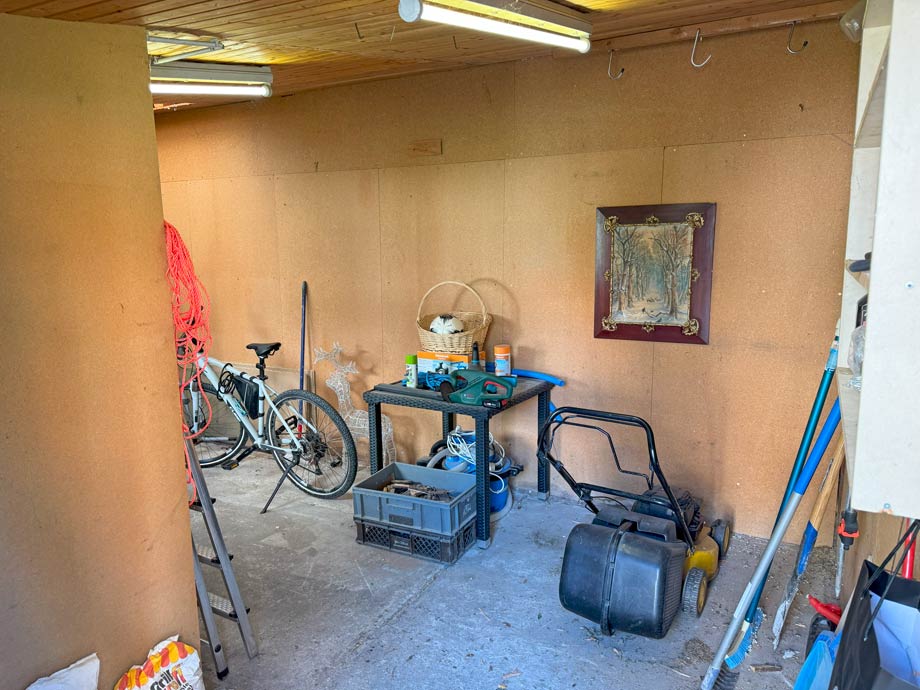 Das Haus ist teilweise unterkellert, der etwa 20 m² große Keller ist nur als Lagerraum nutzbar. Insgesamt präsentiert sich das Gebäude in sehr gutem Zustand, ist sofort bewohnbar und vermittelt einen soliden, gepflegten Eindruck mit viel Wohnqualität. Die Beheizung erfolgt über eine Gasetagenheizung, im Wohnzimmer sorgt zusätzlich ein Kaminofen für Behaglichkeit.